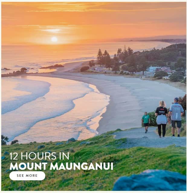 Mount Maunganui Beach - Distance: 15 KM - The Mount beach is a popular and frequently awarded number one beach in New Zealand. It is known for its soft white sand, clear water, surfing waves, and is situated alongside the iconic Mount Maunganui (Mauao) volcano.
