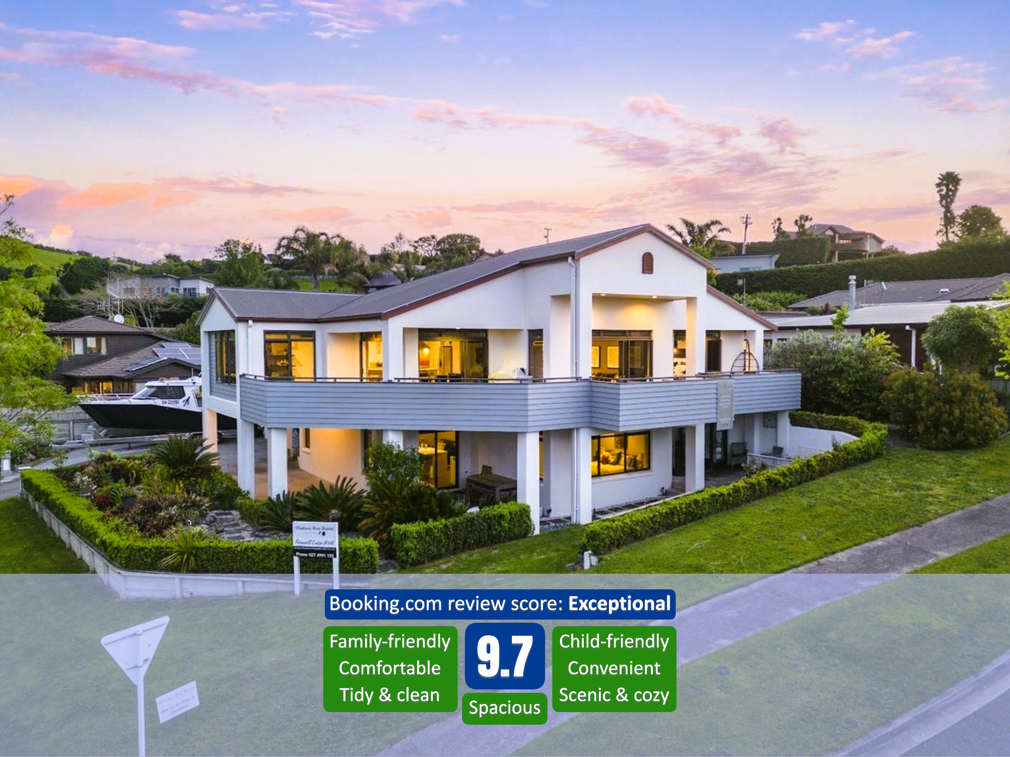 Located in the quiet, leafy suburb of Ohauiti, it is close to many of the Bay of Plenty’s top attractions — the Crossing Mall, Tauranga City Centre, Bayfair Shopping Centre, Mount Maunganui Beach, and Papamoa Beach — all are within easy reach. Nature and animal lovers will enjoy nearby McLaren Falls, Omanawa Falls, and Marshall’s Animal Park, just a short drive away. Ohauiti Reserve, a beautiful destination walkway featuring bush walks, flood plains, and open grasslands, is also within easy walking distance. The popular wedding venue Eagle Ridge is also conveniently close.Â